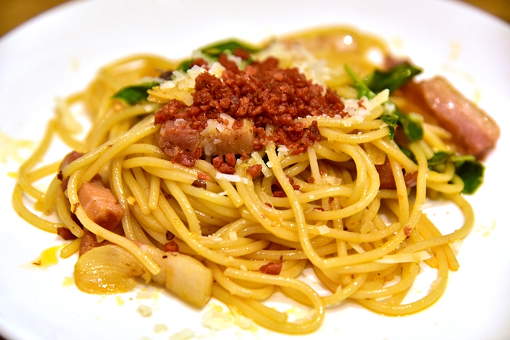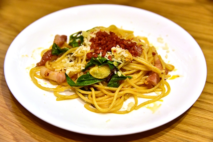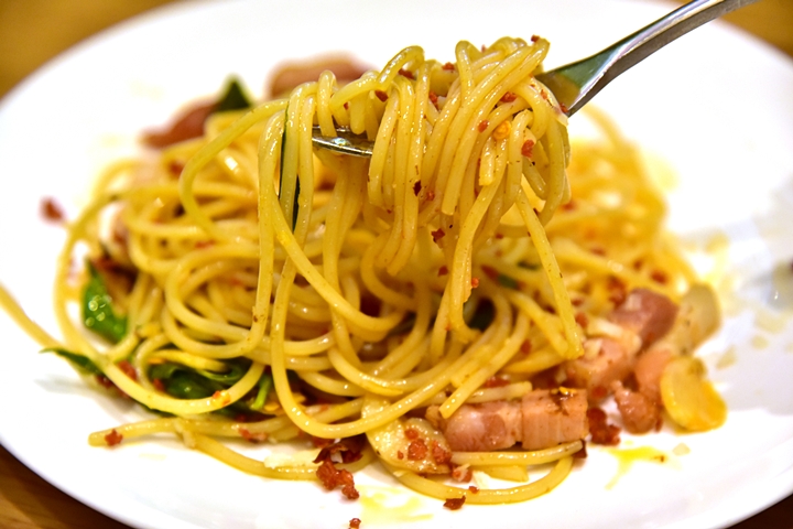 4. Thai Spicy Bacon Spaghetti (140+ THB) – สปาเก็ตตี้ผัดพริกกระเทียมเบค่อนรสเผ็ดจัดจ้านแบบไทยๆ