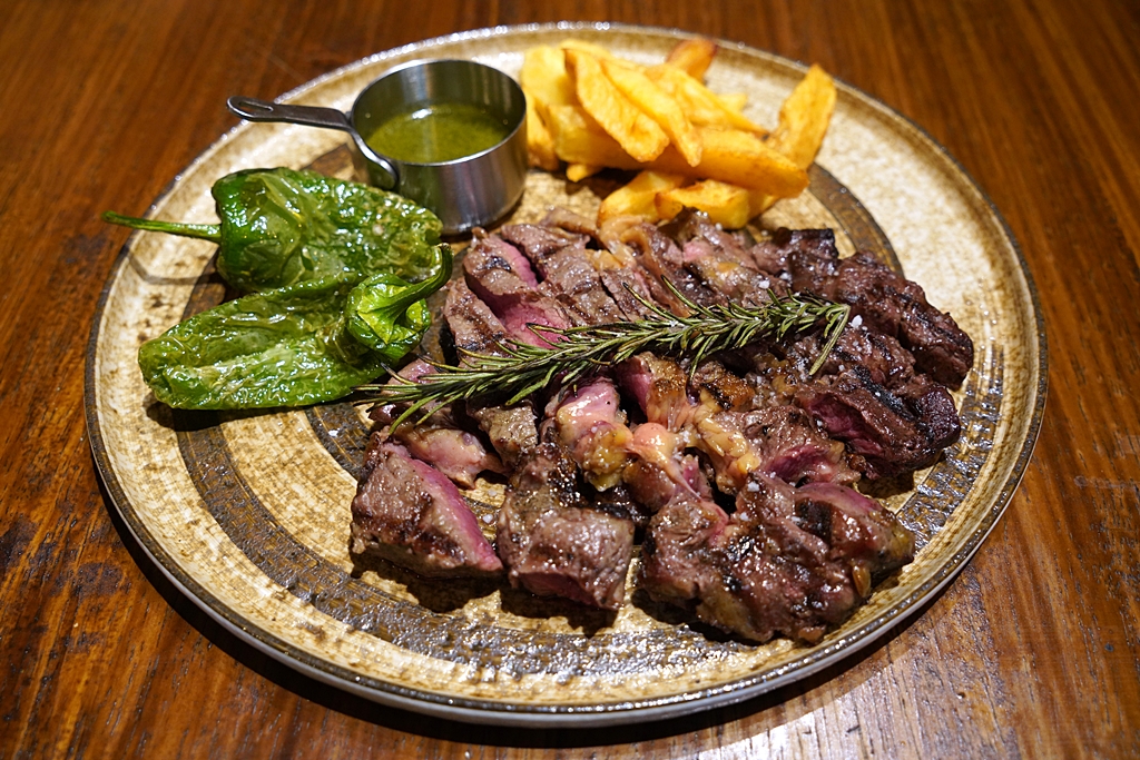 7. Rib Eye Beef Steak (490++ THB) [13/20] – ริบอายสเต็กเนื้อแองกัสย่างไฟเสิร์ฟคู่กับเฟรนช์ฟรายส์และพริกปาดรอน