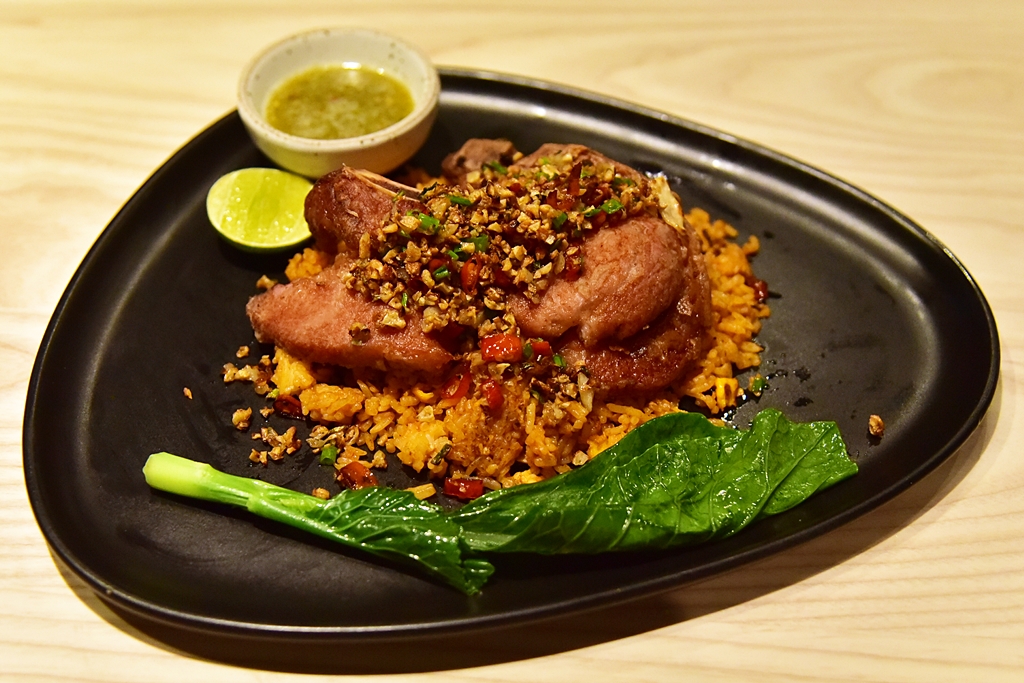 6. Chili & Garlic Pork Chop with Korean Fried Rice (190+ THB) – ข้าวผัดเกาหลีพอร์คชอปคั่วพริกเกลือกระเทียม
