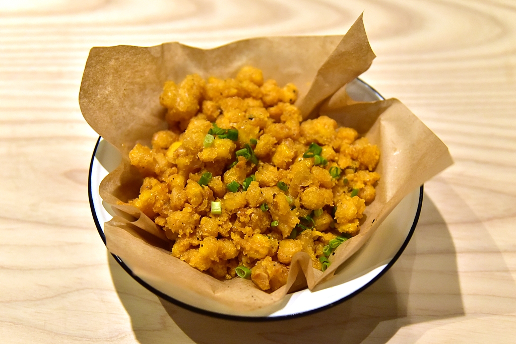 1. Salted Egg Crispy Corn (100+ THB) – ข้าวโพดชุบแป้งทอดไข่เค็มรสชาติเค็มๆมันๆ ทานแล้วติดใจแน่นอน
