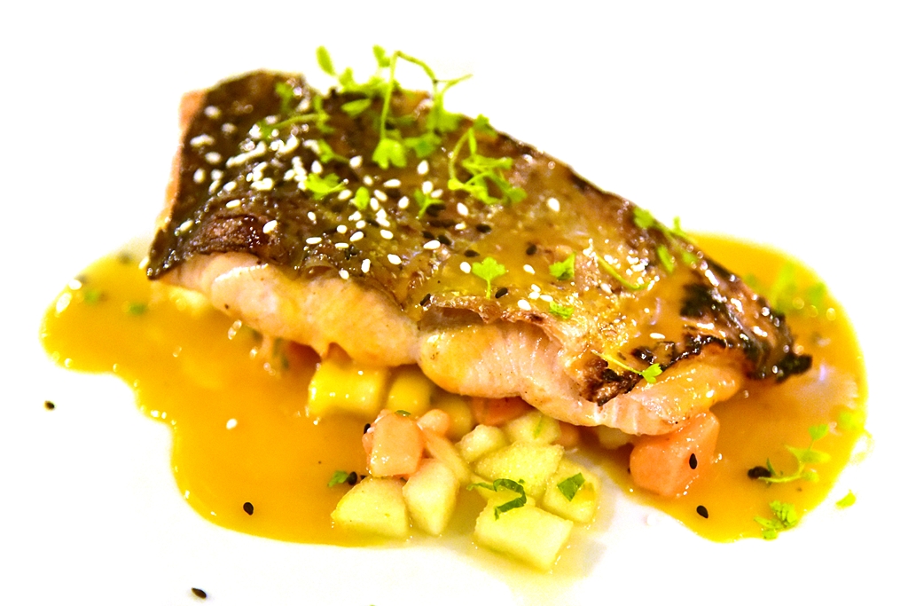 4. Grilled Salmon Fillet with Fruit, Lime and Orange Sauce (17.50 EURO) – แซลม่อนฟิลเลตย่างสุกกำลังดีในซอสส้มและมะนาวรสเปรี้ยวหวาน