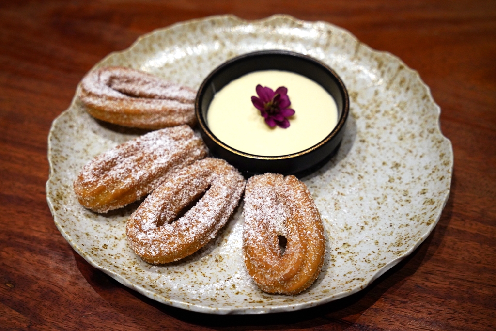 13. Sake Kasu Churros (290++ THB) [16/20] – ชูโรสทอดที่เนื้อสัมผัส perfect มากเสิร์ฟคู่กับซอสไวท์ช็อกโกแลตผสมสาเก