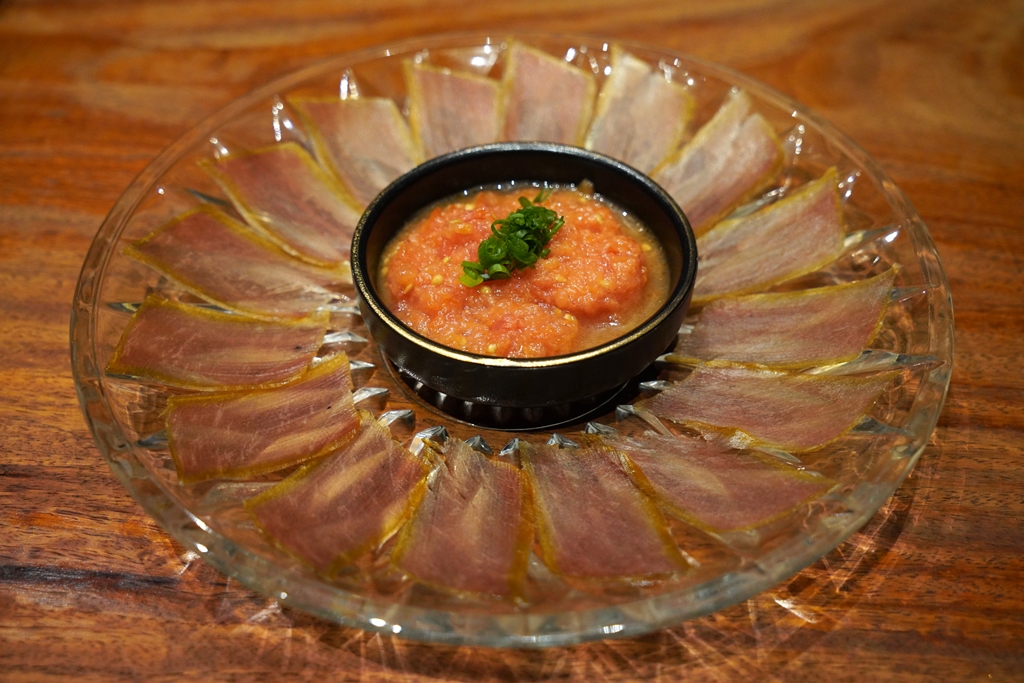 6. Tuna Ham (550++ THB) [13/20] – ปลาทูน่าส่วนเนื้อแดงที่นำมาเคียวร์ให้มีรสสัมผัสเหมือนแฮม Jamon เสิร์ฟคู่กับขนมปังและซอสมะเขือเทศ