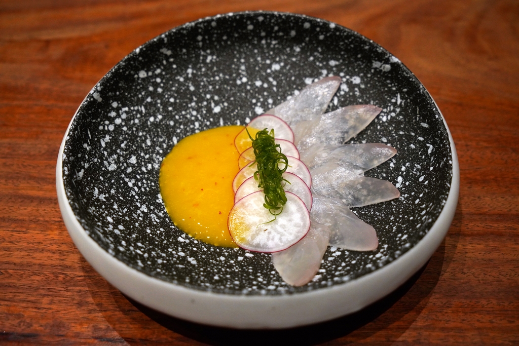 4. Kanpachi Tiradito (390++ THB) [15/20] – ซาชิมิเนื้อปลาคันปาจิเสิร์ฟคู่กับซอสมะม่วงสุกและพริก