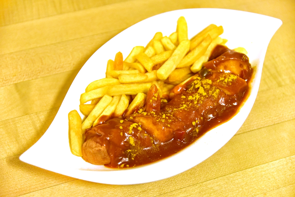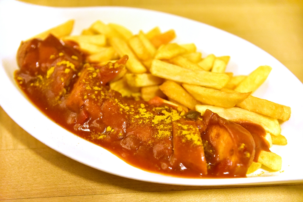 1. Currywurst with Chips (8.25 EURO) – ไส้กรอกย่างหนังกรอบเนื้อเด้งเสิร์ฟกับมันฝรั่งทอดแบบจัดหนักจัดเต็ม