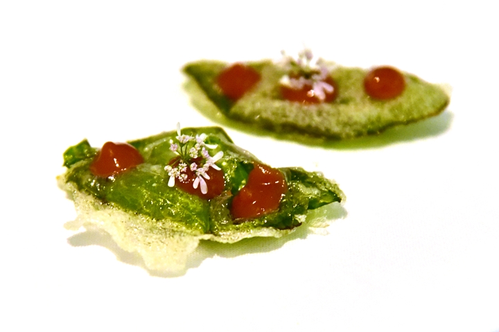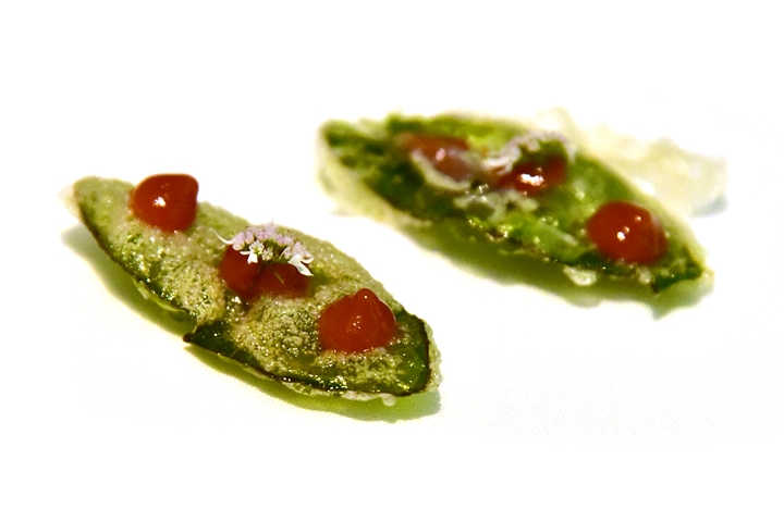 1st course : Pan Leaf Chilly Jam – ใบปานกลิ่นหอมฟุ้งที่ชาวอินเดียนิยมใช้ทานหลังมื้ออาหารนำมาชุบแป้งทอดเสิร์ฟคู่กับซอสพริก เป็นสัมผัสที่แปลกใหม่และเหมาะแก่การเริ่มต้นมื้ออาหารอันมหัศจรรย์จริงๆ