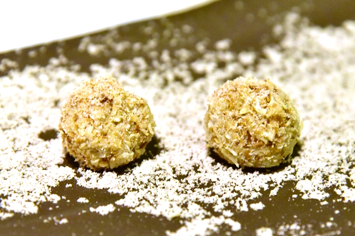 4th course : Eggplant Cookie – คุกกี้ที่ทำจากมะเขือม่วงแห่งผอมด้วยเครื่องเทศอินเดียกลิ่นหอมฟุ้ง เป็นเมนูที่รสสัมผัสแปลกใหม่มากจริงๆ ต้องมาลองครับ