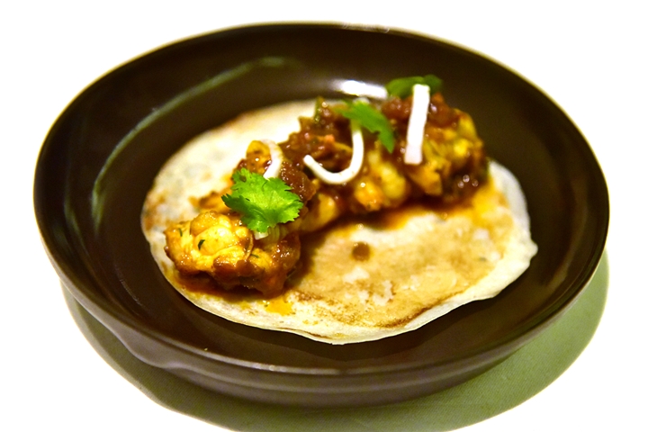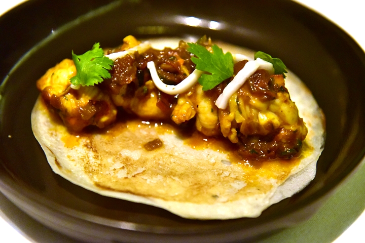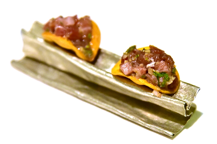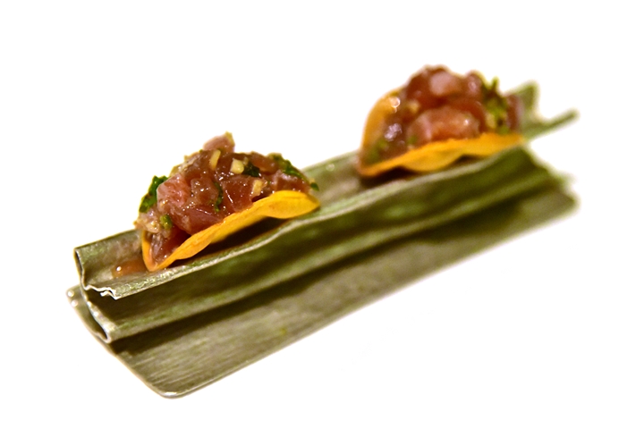 10th course : Akami Tacos – ทาโก้แป้งกรอบไส้เนื้อปลาอากามิดิบคลุกเคล้ากับเครื่องเทศอินเดียรสเปรี้ยว