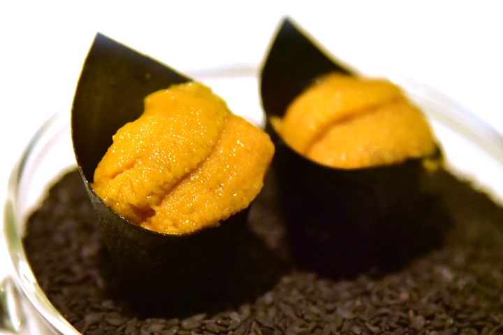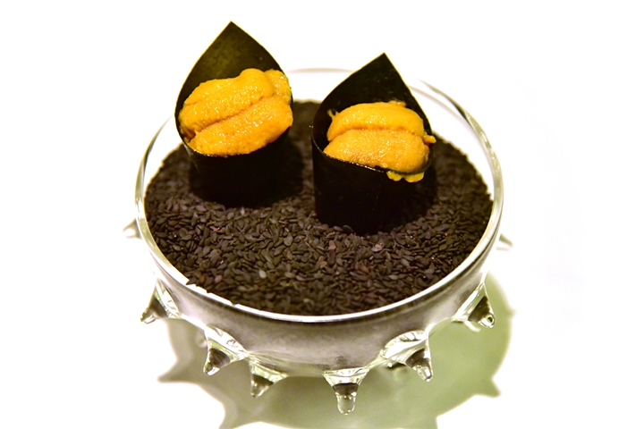 13th course : Gin Tonic Uni – มาร์ตินี่ไข่หอยเม่นพร้อมด้วยไอศกรีมเรดิชรสเย็นสดชื่นและแตงกวาอินฟิวส์เหล้าจิน มันช่างซับซ้อนและเข้ากันได้อย่างลงตัวจริงๆ