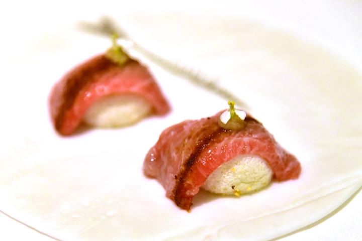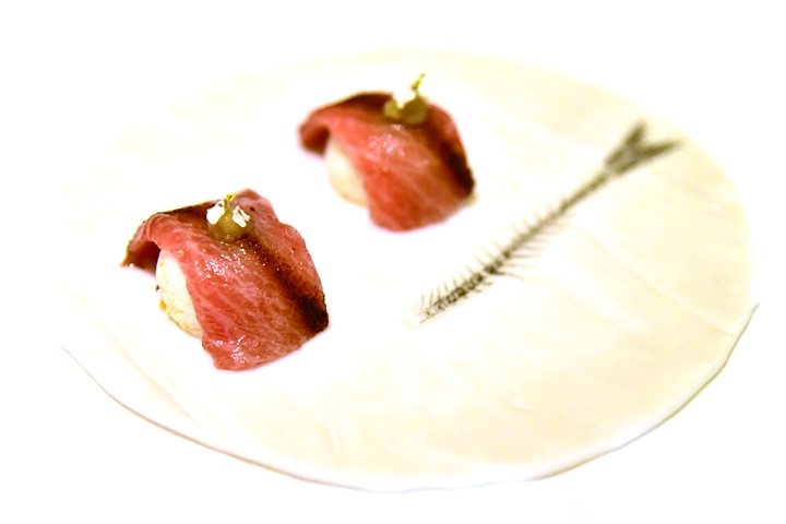 14th course : Chutoro Sushi – ซูชิชูโทโร่เนื้อเนียนสวยวางบนเมอแรงค์ซุปดาชิและเจลลี่ขิง อูมามิสุดๆ