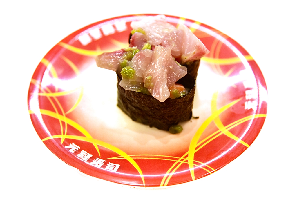 7. Yellowtail Wasabi Sushi (125 Yen) – ซูชิหน้าปลาฮามาจิสับผสมกับวาซาบิดอง