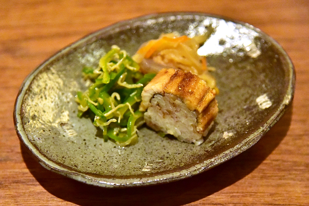 2nd course: Anago Sushi – ซูชิหน้าปลาไหลอะนาโกะเสิร์ฟคู่กับผักญี่ปุ่นสองชนิด