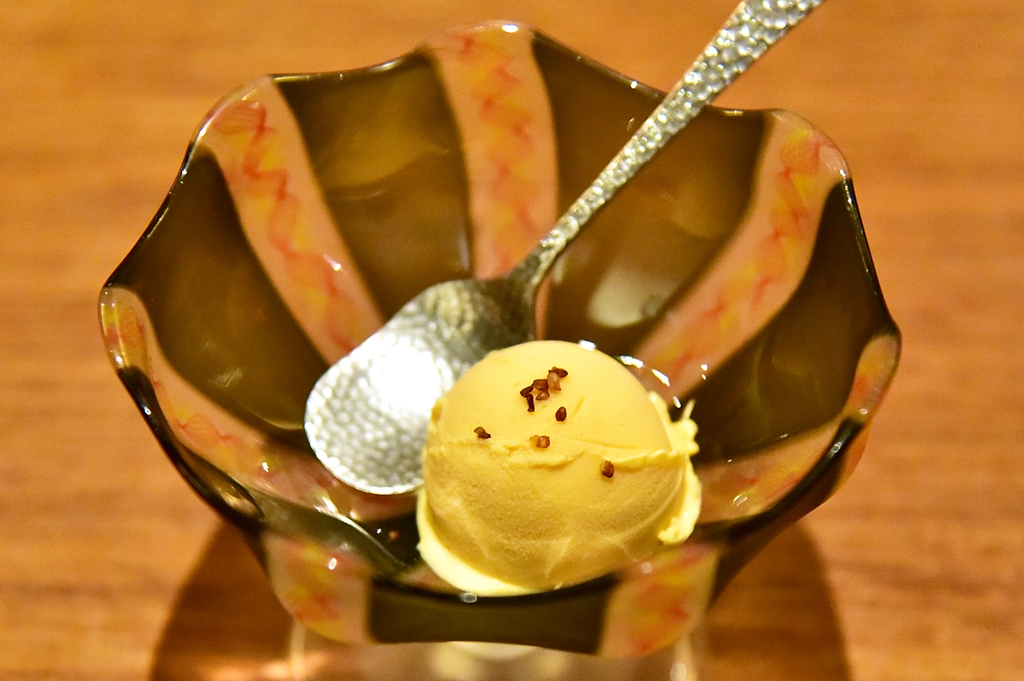 9th course: Soba Tea Icecream – ไฮไลต์ของมื้อเลยก็ว่าได้กับ “ไอศกรีมชาเมล็ดโซบะ” ที่หอมอร่อยมากๆ