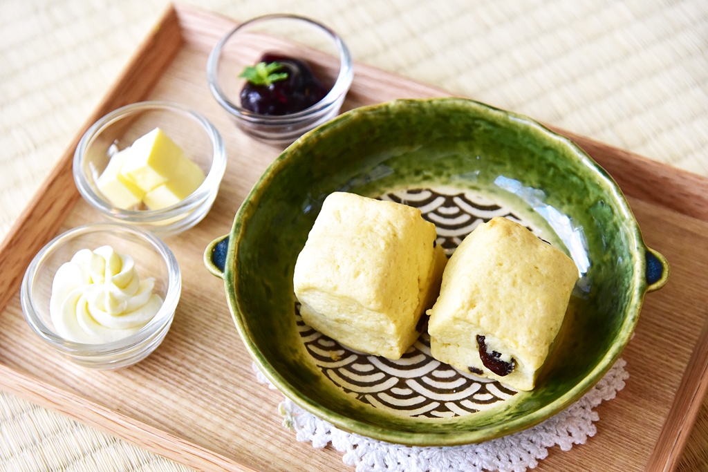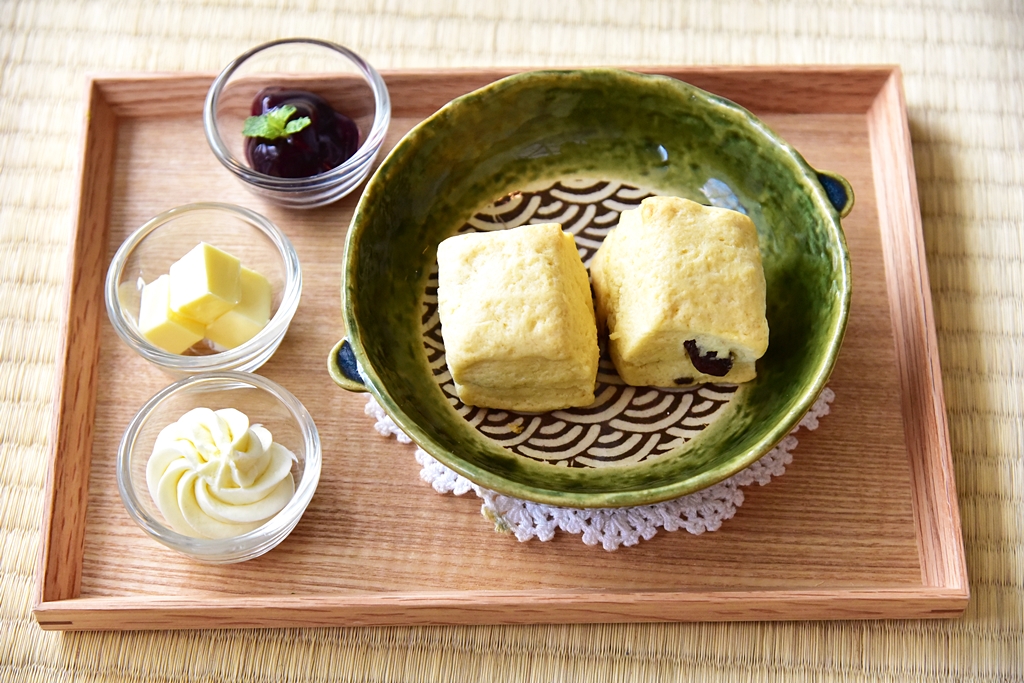 3. Japanese Scones (130 THB) – สโคนสไตล์ญี่ปุ่นเนื้อแป้งละเอียดกำลังดีเสิร์ฟคู่กับครีมและแยม