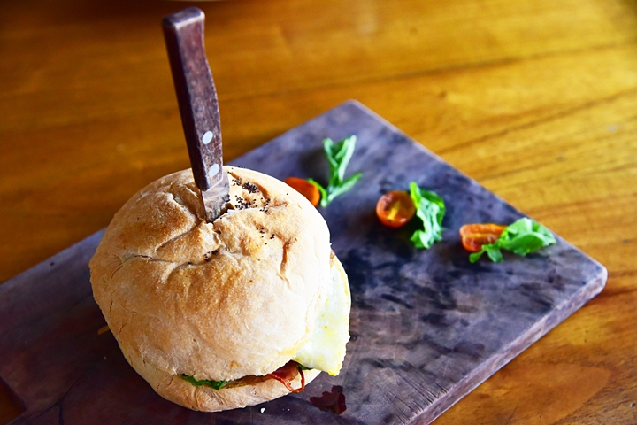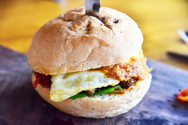 4. Brekkie Sangga (Rp. 79.000) – เบอเกอร์ไส้กรอก ไข่ดาวและเบค่อน