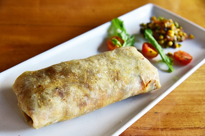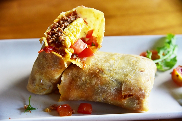 5. Texas Breakfast Burrito (Rp. 86.000) – เบอร์ริโต้ไส้สแครมเบิ้ลเอ้กและเนื้อหมูสับผัดซอสสไตล์เท็กเม็ก