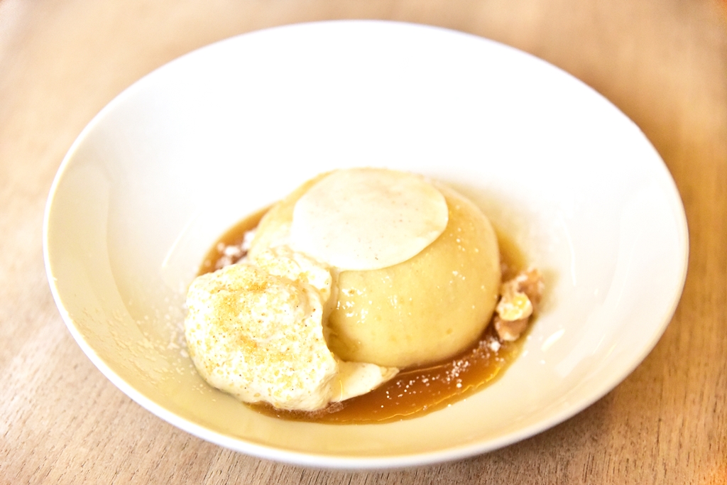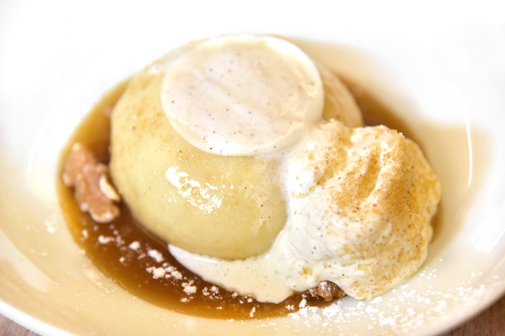 4. Klara (5.90 EURO) – ซาลาเปาของหวานสอดไส้แอปเปิ้ลเชื่อมหน้าซอสวานิลลาและคาราเมลพร้อมด้วยครีมวานิลลากับวอลนัทอบ