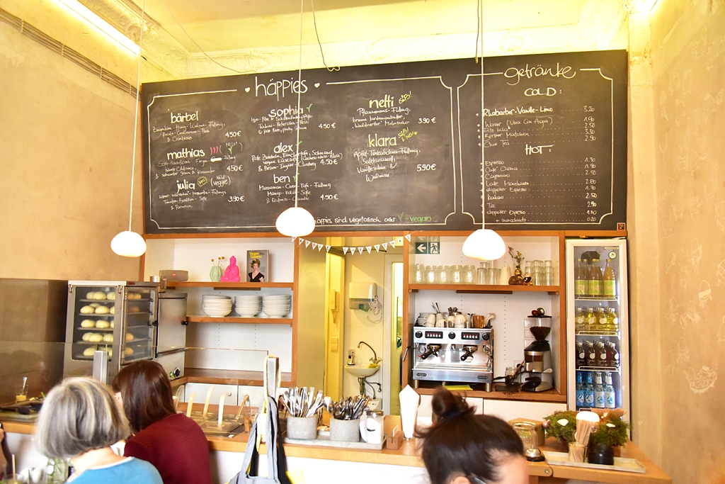 และหนึ่งในร้านอาหารเมือง Berlin ที่สะดุดตาผมมากที่สุดก็คือร้าน häppies คาเฟ่ซาลาเปามังสวิรัติเล็กๆที่สามารถคว้าตำแหน่งอันดับ 2 ใน TripAdvisor ที่เสิร์ฟเมนูซาลาเปาสอดไส้หลากหลายรูปแบบราดด้วยซอสนานาชนิดที่เข้ากันได้ดีกับไส้เสิร์ฟคู่กับสลัดและเครื่องดื่มนานาชนิด ซึ่งทีเด็ดของร้านนี้ก็คือ “ความน่ารัก” ของซาลาเปาที่แต่ละเมนูจะมีชื่อของตัวเองและความอร่อยอย่างไม่น่าเชื่อของซาลาเปาต่างๆ โดยเฉพาะ Ben ซาลาเปาสีเหลืองไส้แกงมัสมั่นเต้าหู้และ Barbel ซาลาเปาสีเขียวไส้ชีสนมแพะราดซอสเพสโต้กับแครนเบอร์รี