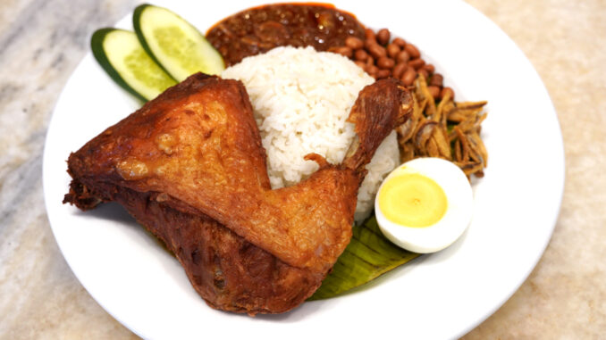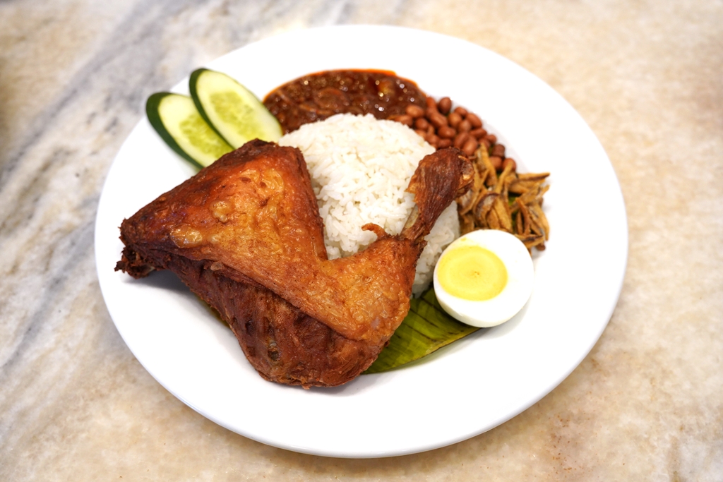 1. Nasi Lemak Ayam Goreng (17.30++ MYR) [15/20] – ข้าวหุงมะพร้าวเสิร์ฟคู่กับไก่ทอดหนังกรอบชิ้นโตพร้อมด้วยไข่ต้ม ปลาซิว ถั่วลิสงและน้ำพริกแซมบัล ซึ่งโดยรวมแล้วก็ถือเป็นนาซีเลอมักที่อร่อยได้มาตรฐานครับ