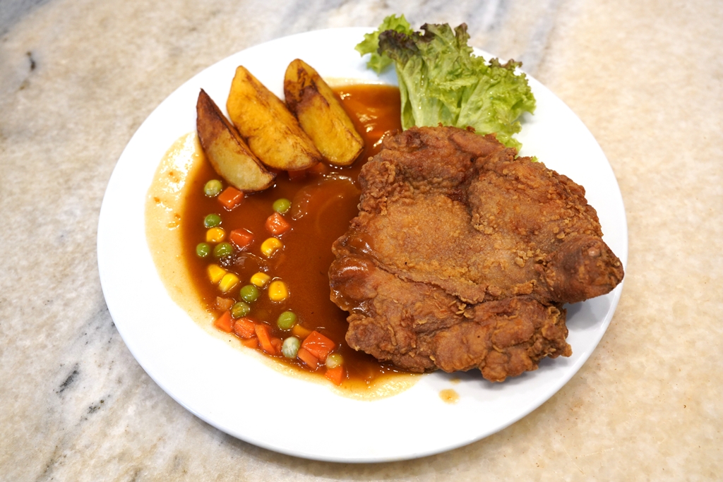 3. Ho Kow’s Signature Hainanese Fried Chicken Chop (19.90++ MYR) [14/20] – สะโพกไก่ชุบแป้งทอดแบบแผ่นใหญ่เสิร์ฟราดซอสมะเขือเทศกับเฟรนช์ฟรายส์