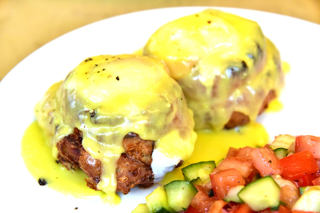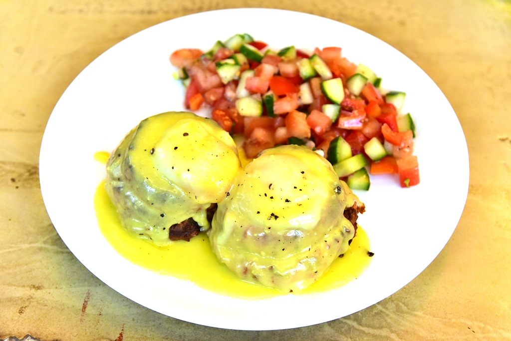 1. Homemade Biscuit Benedict (12.50 EURO) – เอ้กเบเนดิกเสิรฟบนบิสกิตอบใหม่ๆราดด้วยซอสฮอลันเดสจนฉ่ำคู่กับสลัดมะเขือเทศ