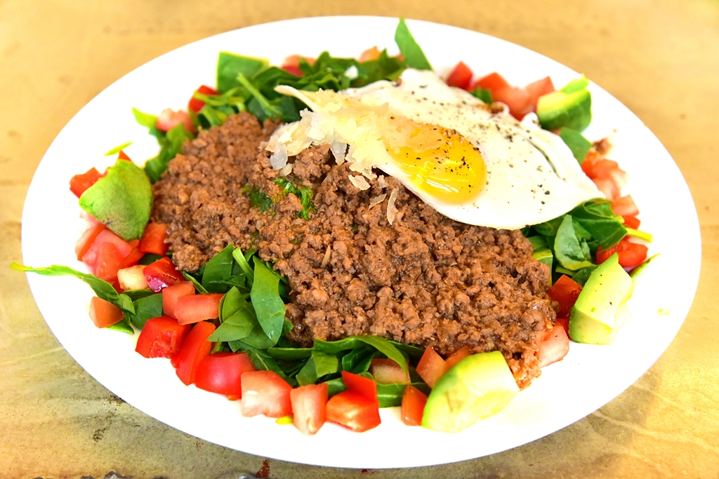 2. Okinawan Taco Rice (13.00 EURO) – ข้าวญี่ปุ่นหน้าหมูสับผัดซอส ไข่ดาว อโวคาโด มะเขือเทศและผักสไตล์แม็กซิกัน