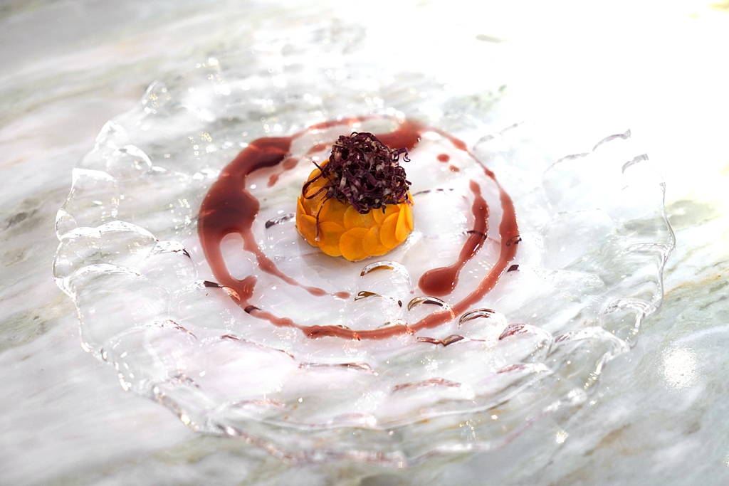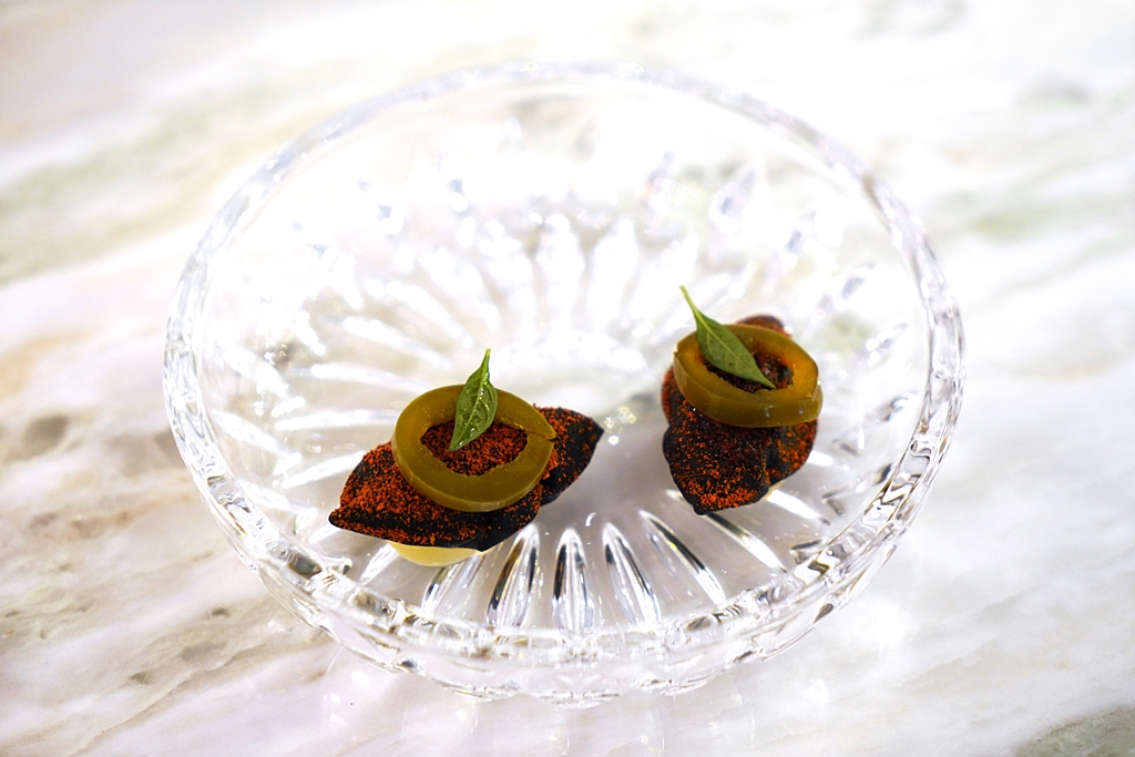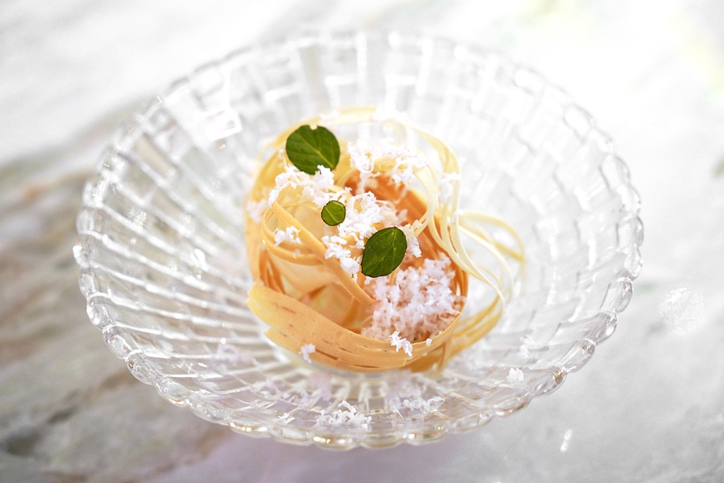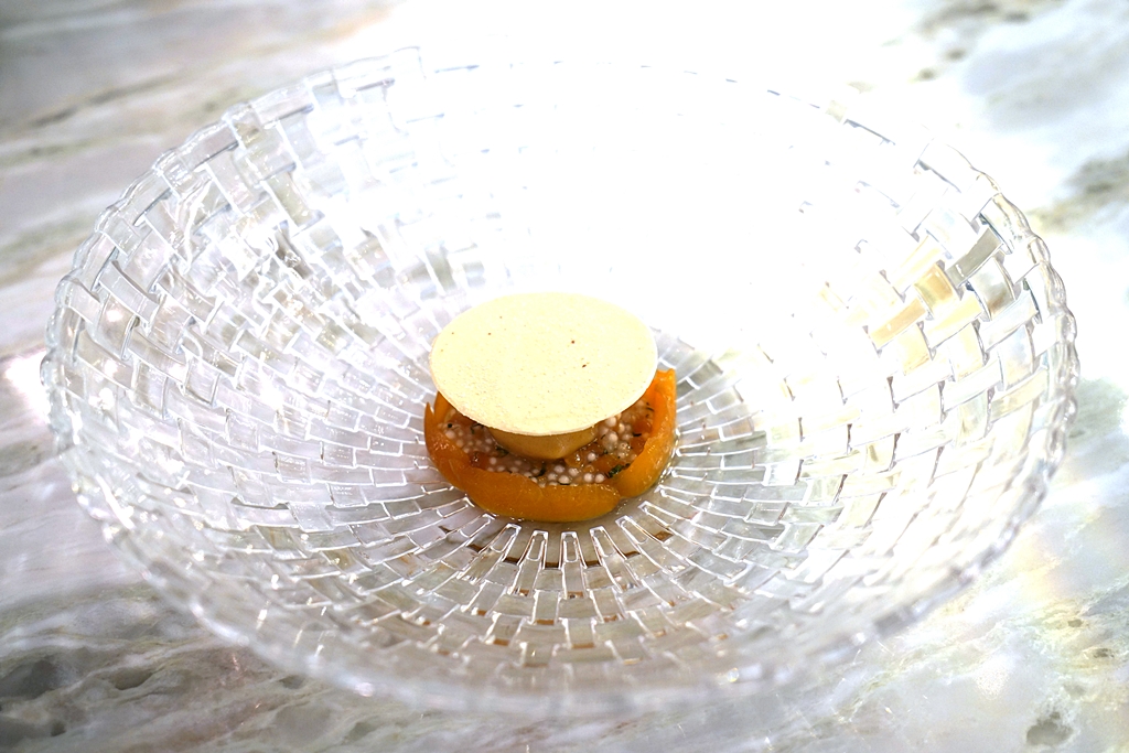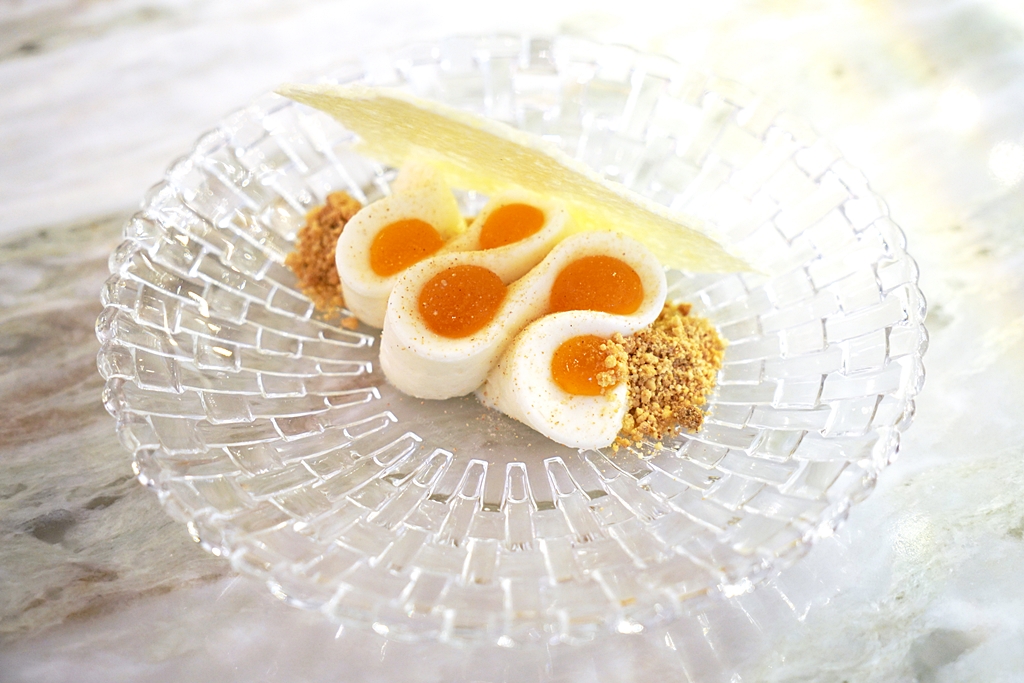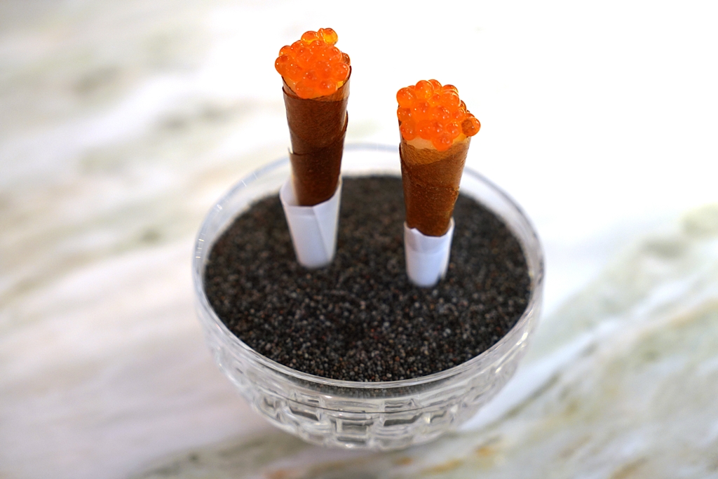 Cornetto – Kohlrabi – Trout Roe [16/20] – ไอศกรีมหัวผักกาดเสิร์ฟแบบเย็นจัดในโคนจิ๋วพร้อมด้วยไข่ปลาเทราท์รสเข้มข้น เมนูนี้ทานแล้วสดชื่นมากและน้ำย่อยพุ่งทันที !!