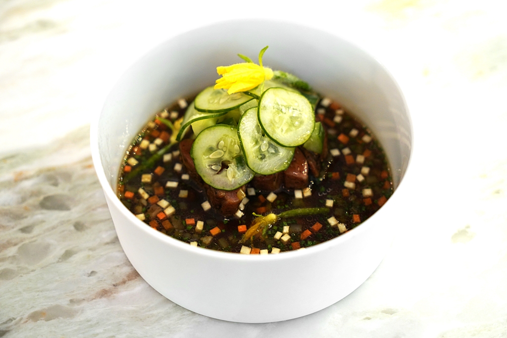 Lamb Neck – Cucumber – Ragu [14/20] – เนื้อสันคอแกะเสิร์ฟในน้ำซุปเนื้อแกะพร้อมด้วยผักดองหลากชนิด