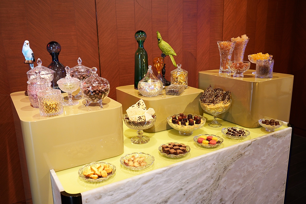 CANDY STORE : ก่อนกลับบ้าน เชฟ David Hartwig จะเชิญทุกท่านมาเลือกหยิบกองทัพขนมหวานหลากหลายชนิดกลับบ้านได้ตามใจชอบ ไม่ว่าจะเป็น มาการองหลากรสชาติ เจลลี่ผลไม้ ช็อกโกแลต ถั่วเคลือบช็อกโกแลตและขนมอบหลากชนิด
