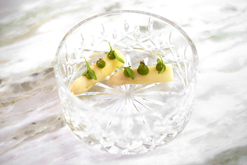 White Asparagus – Coriander [14/20] – หน้อไม้ฝรั่งสีขาวต้มจนเนื้อสุกกำลังดีเสิร์ฟกับซอสผักชี