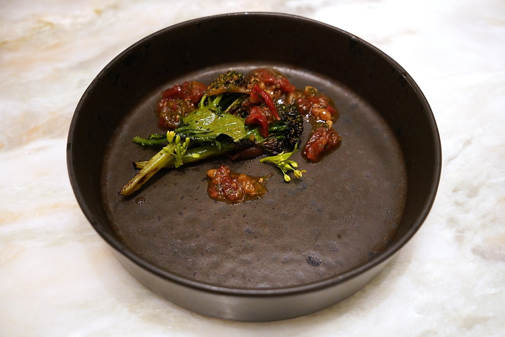 Broccoli – Gremolata – Tomato [15/20] – บร็อคโคลี่ย่างเสิร์ฟคู่กับซอสพาร์ซลีย์สับกับกระเทียมและมะเขือเทศ