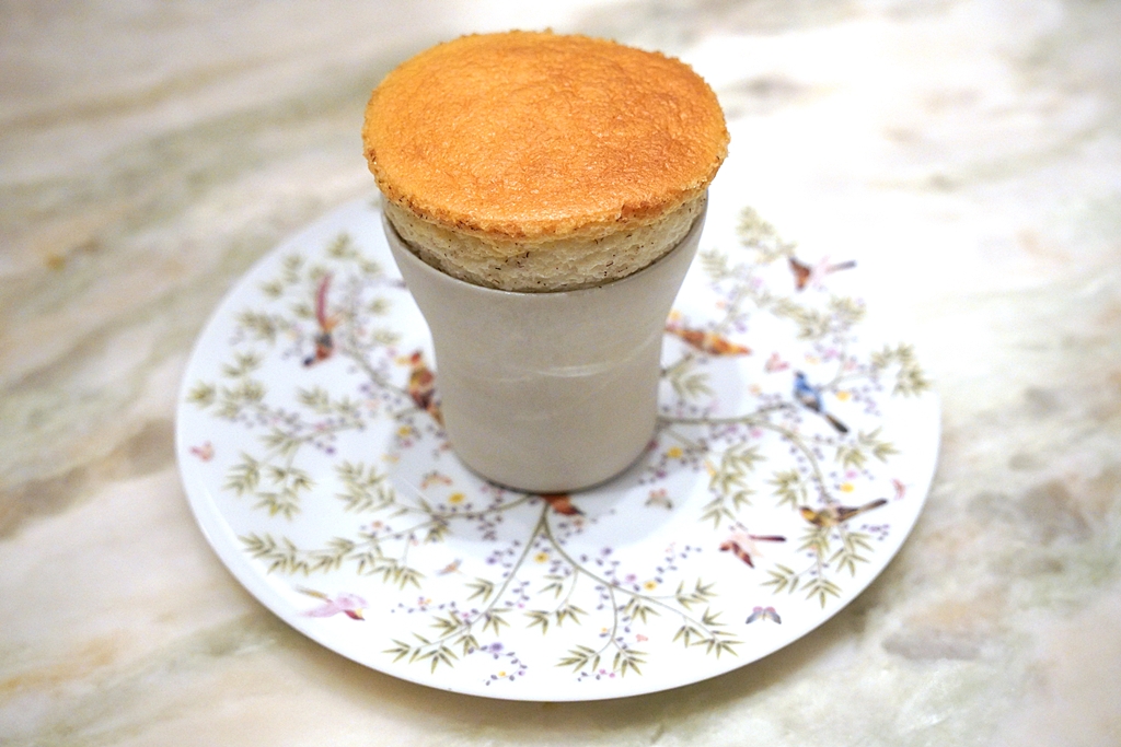 Souffle – Sorbet – Coconut [13/20] – ซูเฟลไข่ขาวเนื้อเนียนนุ่มเสิร์ฟแบบร้อนๆด้านบนกรอบๆทานคู่กับซอร์เบต์มะพร้าว