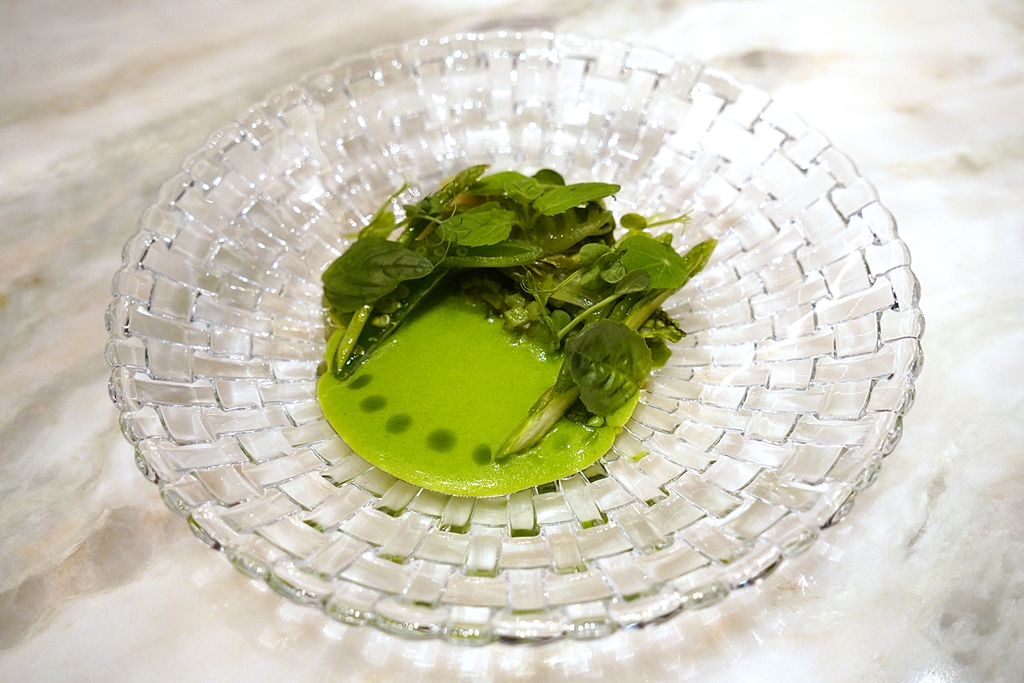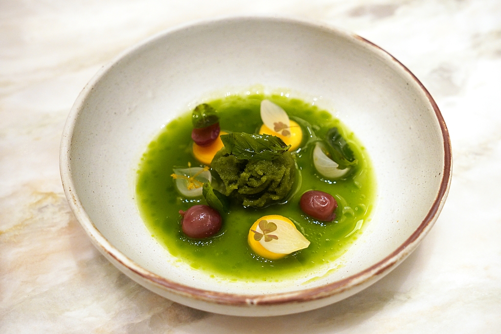 Snow Pea – Green Pea – Mint [13/20] – เมนูถั่วสโนว์พีและถั่วกรีนพีเสิร์ฟกับซอสครีมสีเขียวที่ได้รับรสชาติความเขียวแบบเต็มๆ