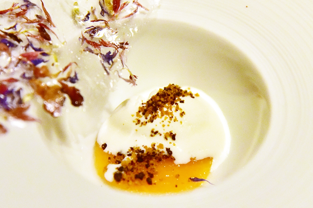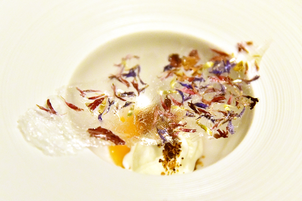 7th course: Cheese & Melon – ไอศกรีมชีสรสเข้มข้นเสิร์ฟคู่กับเมล่อนตกแต่งด้วยแป้งกรอบ