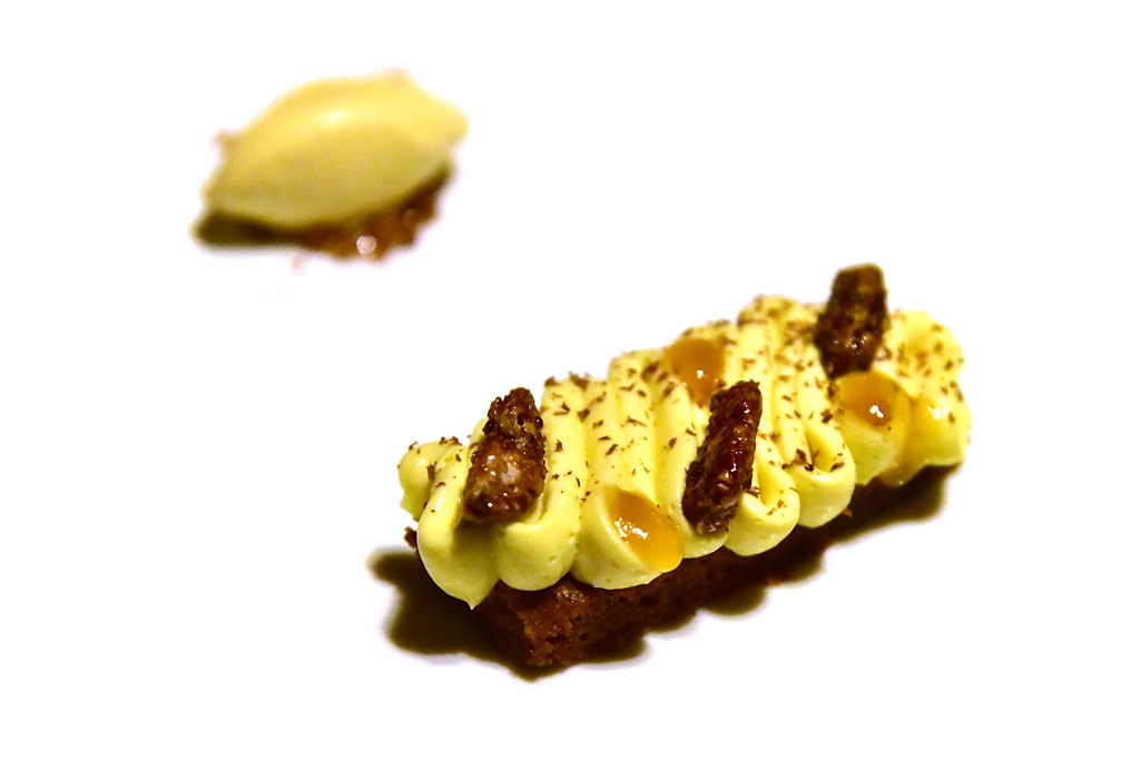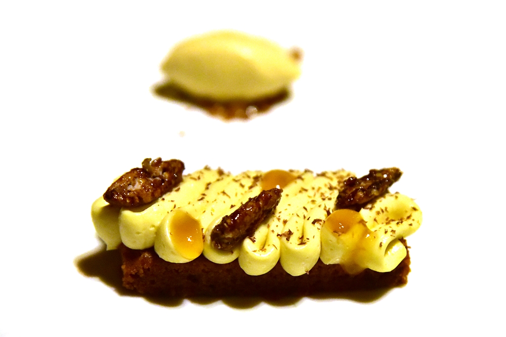 8th course: Chocolate Brownie & Pecan Nut Ice-cream – บราวนี่ช็อกโกแลตหน้าครีมและเจลไซตรีสเสิร์ฟคู่กับไอศกรีมถั่วพีแคน