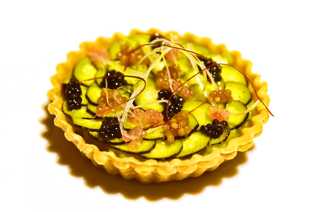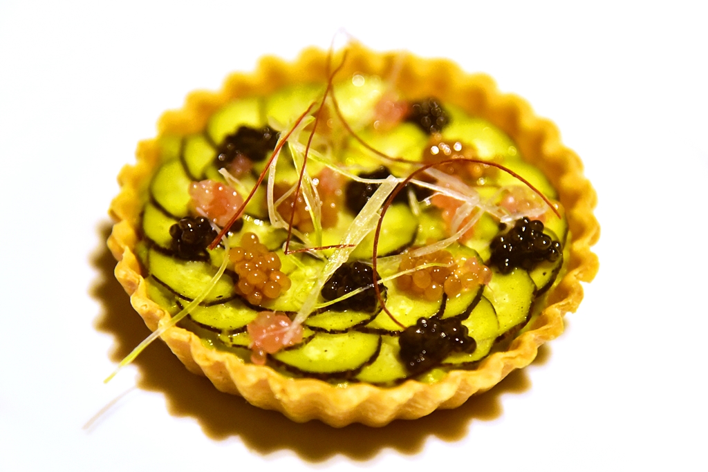 2nd course: Zucchini Tart & Caviars – ทาร์ตแตงซุคกินี่หน้าไข่ปลาคาเวียร์ มัสตาร์ดและมะนาวคาเวียร์
