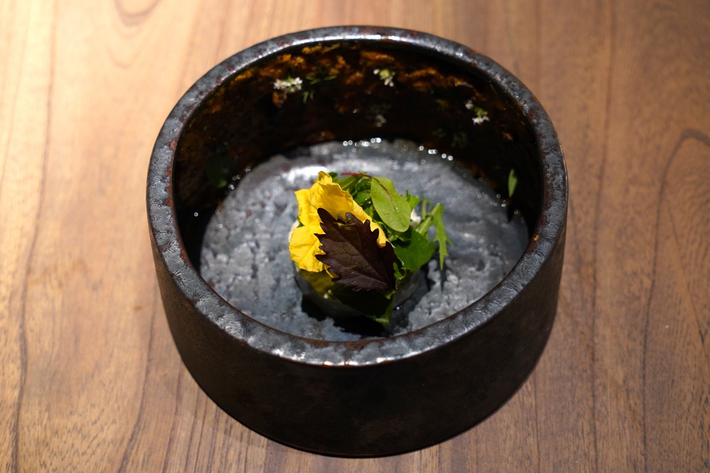 6th course : ROSE [17/20] – เมนูของหวานแบบเย็นสไตล์เมือง Mumbai ที่มีฐานเป็นโยเกิร์ตหน้าเมล็ดแมงลัก คาเวียร์ดอกกุหลาบและกลีบกุหลาบ