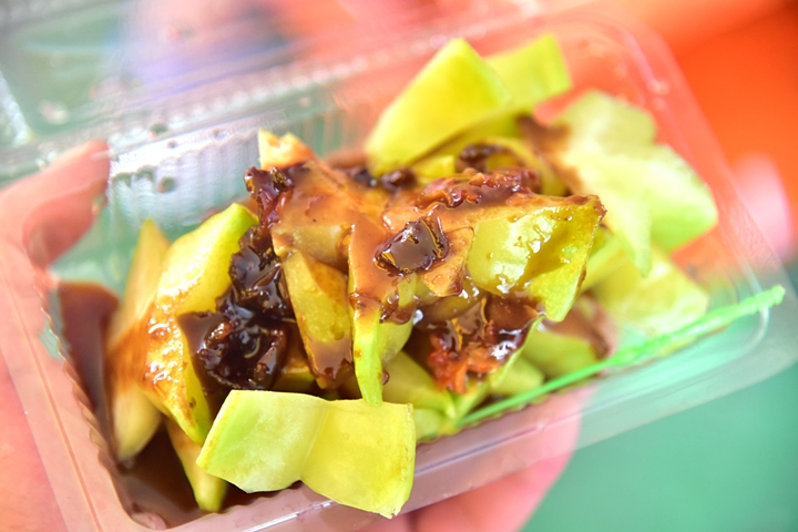 2. Rujak Manis : มะเฟืองหั่นแว่นราดซอสรสหวานๆเผ็ดๆ ประหลาดมาก แต่ก็ทานได้อยู่ เมนูนี้หาทานได้ตามข้างทางครับ