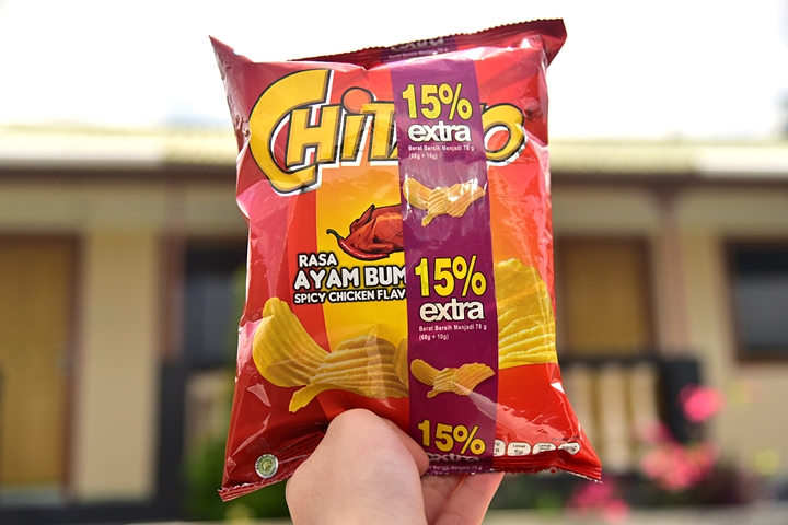 4. Snacks : ขนมคบเคี้ยวจำพวกมันฝรั่งทอดของที่อินโดนี่รสชาติส่วนใหญ่ก็จะคล้ายๆกับของบ้านเราครับ ที่เจอรสประหลาดสุดคือมันฝรั่งรสช็อกโกแลต ไม่อร่อยเลย !!