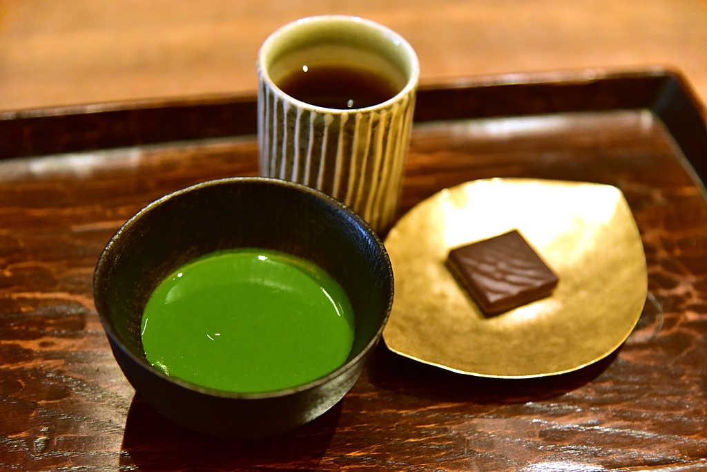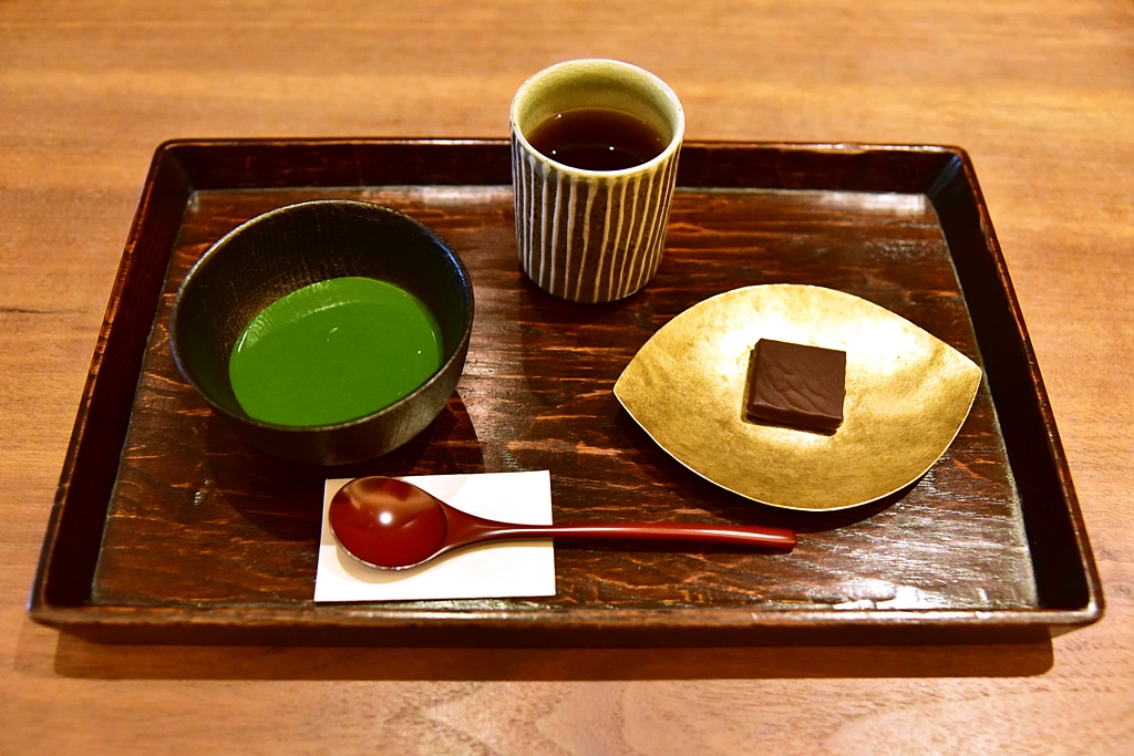1. Matcha Gourmand (1,620 Yen) – เซ็ตมัตฉะกูมองต์ที่ประกอบไปด้วย “โคอิฉะ” หรือ “มัตฉะเข้มข้น” กลิ่นหอมอบอวลรสชาติอูมามิและขมติดปลายลิ้นนิดๆ ชาโฮจิฉะร้อนสำหรับลดความเข้มข้นของโคอิฉะและดาร์กช็อกโกแลตเกรดพรีเมี่ยม