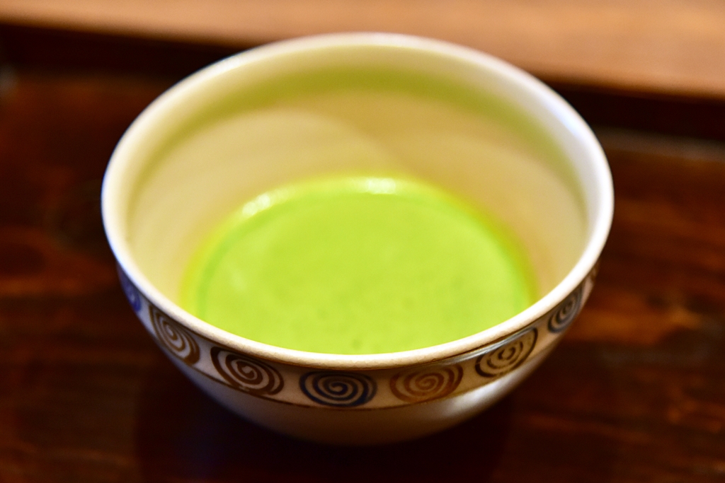 2. Ummon-no-mukashi (1,620 Yen) – ชามัตฉะร้อนเกรดพรีเมี่ยมที่สุดของร้าน (แก้วละ 500 บาท !!) ซึ่งรสชาติของชาก็ดีงามจริงๆ พอดื่มเสร็จทานร้านก็จะเสิร์ฟชาโฮจิฉะมาเสริมให้อีกแก้วตอนท้ายครับ