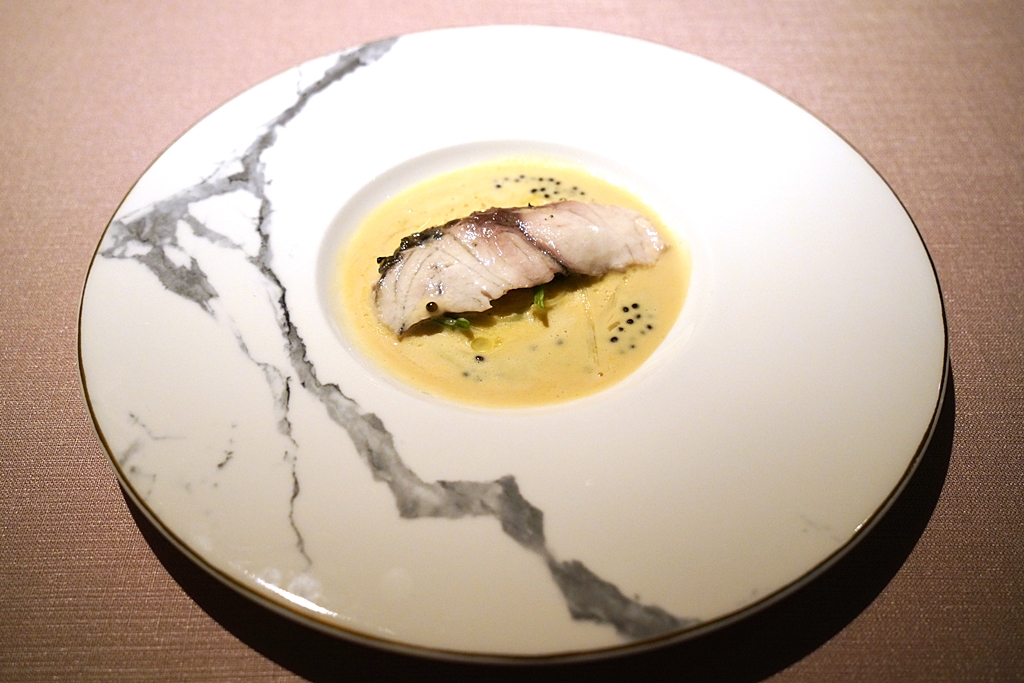 6th course : Lightly-smoked sea bass with caviar sauce [18/20] – เนื้อปลากระพงเนื้อเนียนนุ่มเสิร์ฟคู่กับหัวผักกาดในซอสครีมไข่ปลาคาเวียร์ องค์ประกอบแบบนี้ยังไงก็อร่อยครับ ซึ่งเมนูนี้ของ J’aime นั้นเรียกว่าอร่อยมากเลย ฟินสุดๆ