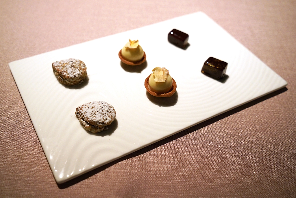 Petit Fours [10/20] – เมนูขนมหวานจานเล็กปิดท้ายมื้ออาหาร ได้แก่ คุ้กกี้อัลมอนด์ส้ม ทาร์ตลิ้นจี่กุหลาบและลูกอมคาราเมล เสิร์ฟคู๋กับชาร้อนๆ ส่วนตัวชอบแค่ตัวทาร์ตครับ ที่เหลือหวานจับใจมากๆ