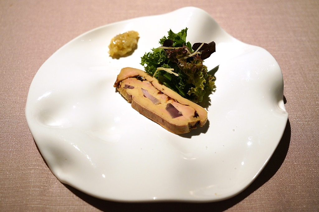 5th course : Cured foie gras marbled with roasted duck, guava marmalade, and brioche [15/20] – ฟัวกราส์พราลีนกับกึ๋นเป็ด เนื้อเป็ดและแคนดี้จากฝรั่งเสิร์ฟพร้อมกับชัทนีย์ฝรั่ง ขนมปังบริออชและสลัดผักสำหรับตัดเลี่ยน