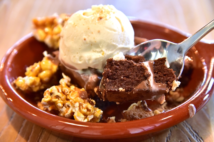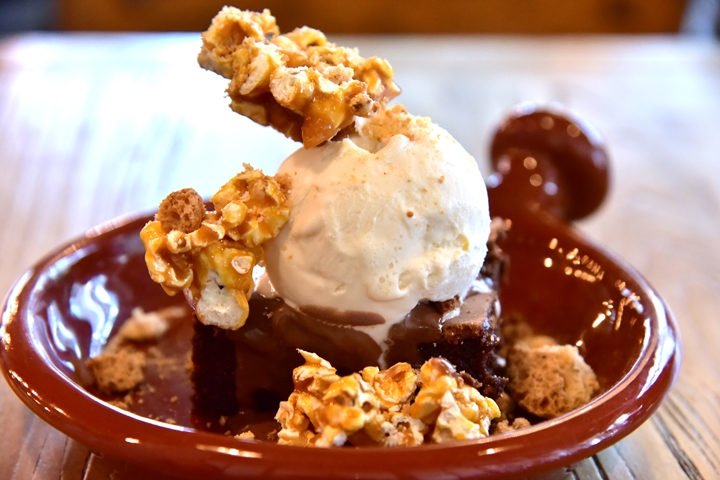 4. Epic Chocolate Brownie (230++ THB) – บราวนี่เนื้อช็อกโกแลตรสเข้มข้นเสิร์ฟคู่กับไอศกรีมอัลมอนด์และป็อปคอร์นเคลือบคาราเมล คอช็อกโกแลตฟินแน่นอน