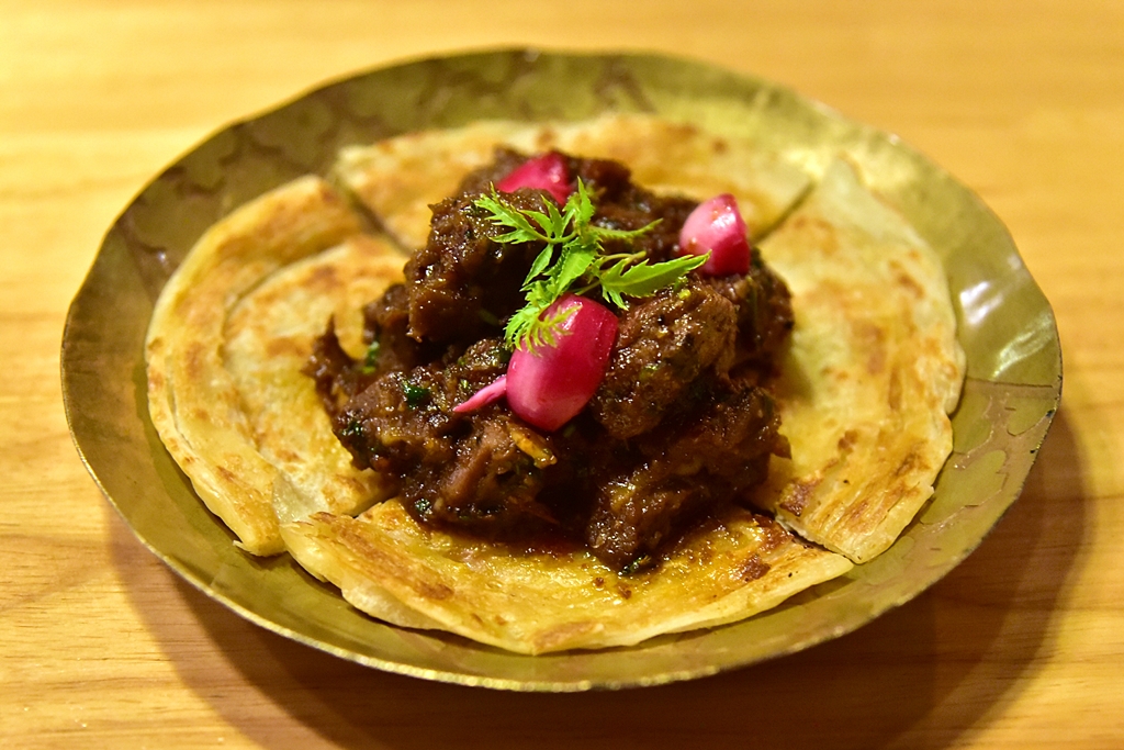 5. Kerala Mutton Roast, coconut shoot, malabar parotta (490++ THB) [16/20] – แกงเนื้อแกะย่างเนื้อนุ่มหอมและมะพร้าวอ่อนเสิร์ฟบนแผ่นแป้งพารอตต้าที่คล้ายๆกับแป้งโรตีเนื้อแน่น เนื้อแกะนุ่มมากรสชาติดีมาก เยี่ยม !!