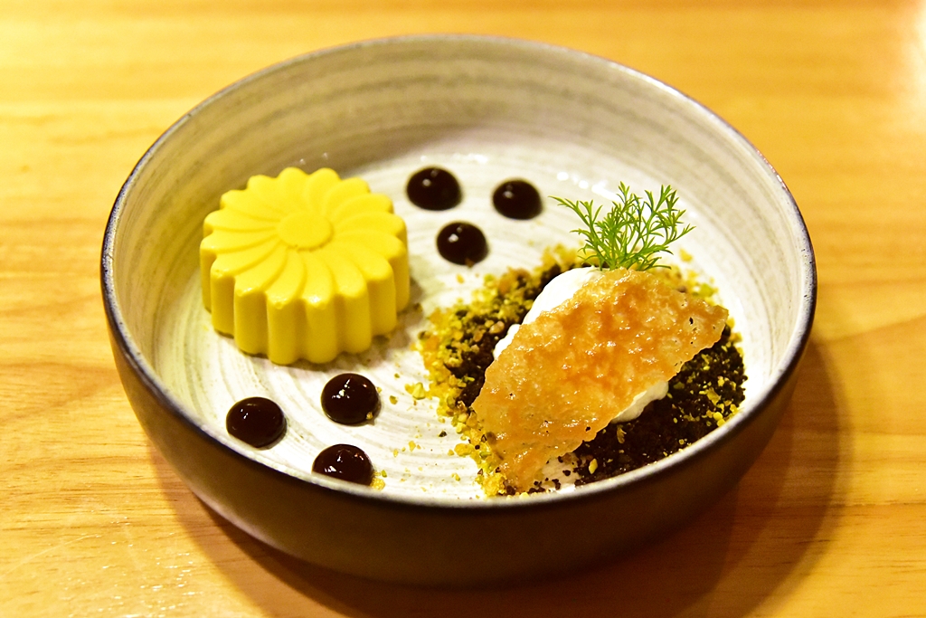 8. Mango Kulfi, white chocolate, kaffir lime cream, fennel (290++ THB) [14/20] – ไอศกรีมอินเดียรสมะม่วงน้ำดอกไม้ผสมไวท์ช็อกโกแลตเสิร์ฟคู่กับครีมกลิ่นมะกรูดและซอสราสเบอร์รี