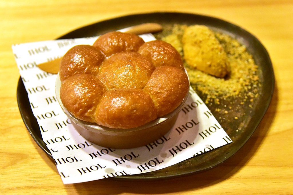 2. Masala Maska Bun, pav baji butter (190++ THB) [12/20] – ขนมปังผสมเครื่องเทศเนื้อนุ่มเสิร์ฟคู่กับเนยที่ทำจากผักโรยหน้าด้วยเครื่องเทศแกงผักที่ได้รับแรงบันดาลใจจากสตรีตฟู้ดชื่อ Pav Baji
