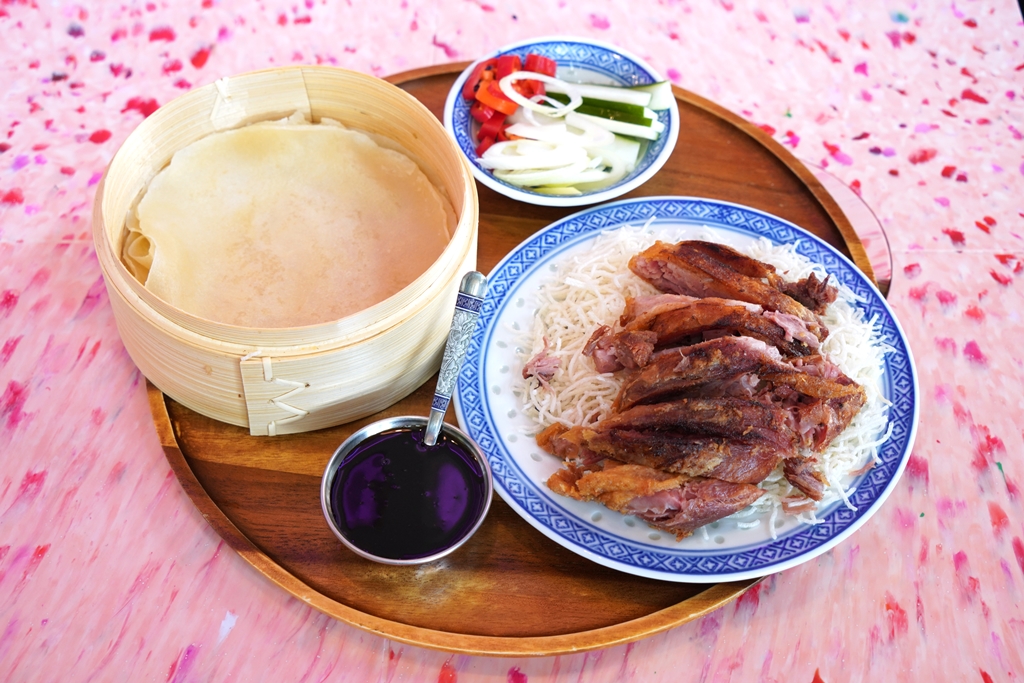 5. Peking Duck Pancakes (325+ THB) [14/20] – เมี่ยงเป็ดปักกิ่งแบบทั้งเนื้อและหนังกรอบๆเสิร์ฟคู่กับแผ่นแป้งหนึบและเครื่องเป็ดปักกิ่ง