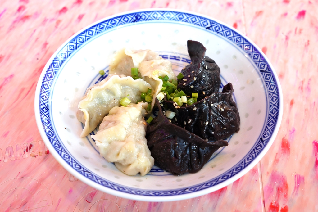 1. Yin-Yang Dumplings (135+ THB) [14/20] – เกี๊ยวนึ่งสองสีที่สีขาวเป็นไส้หมูสับต้นตำรับและสีดำเป็นไส้หมูสับผสมเห็ด ทานคู่กับน้ำจิ้มงาผสมซีอิ๊วแบบร้านหมาล่าฮอตพ็อตเข้ากันได้อย่างลงตัว